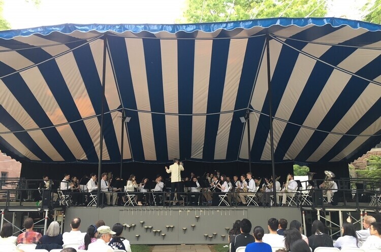 The Yale Bands is a thriving cultural community. Its members are given opportunities to prepare and perform great music; learn about the arts and their place in society and international cultures; and develop skills to become leaders. Through a robust series of musical activities, many Bands members work with and become serious performers, conductors, composers, arrangers, writers, archivists, historians, photographers, producers, choreographers, media producers, critics, and teachers. Band members develop and master these skills through service to the University, performing and producing commencement music, benefit concerts, university ceremonies, theater shows, international tours, reading sessions for classes, and special events.